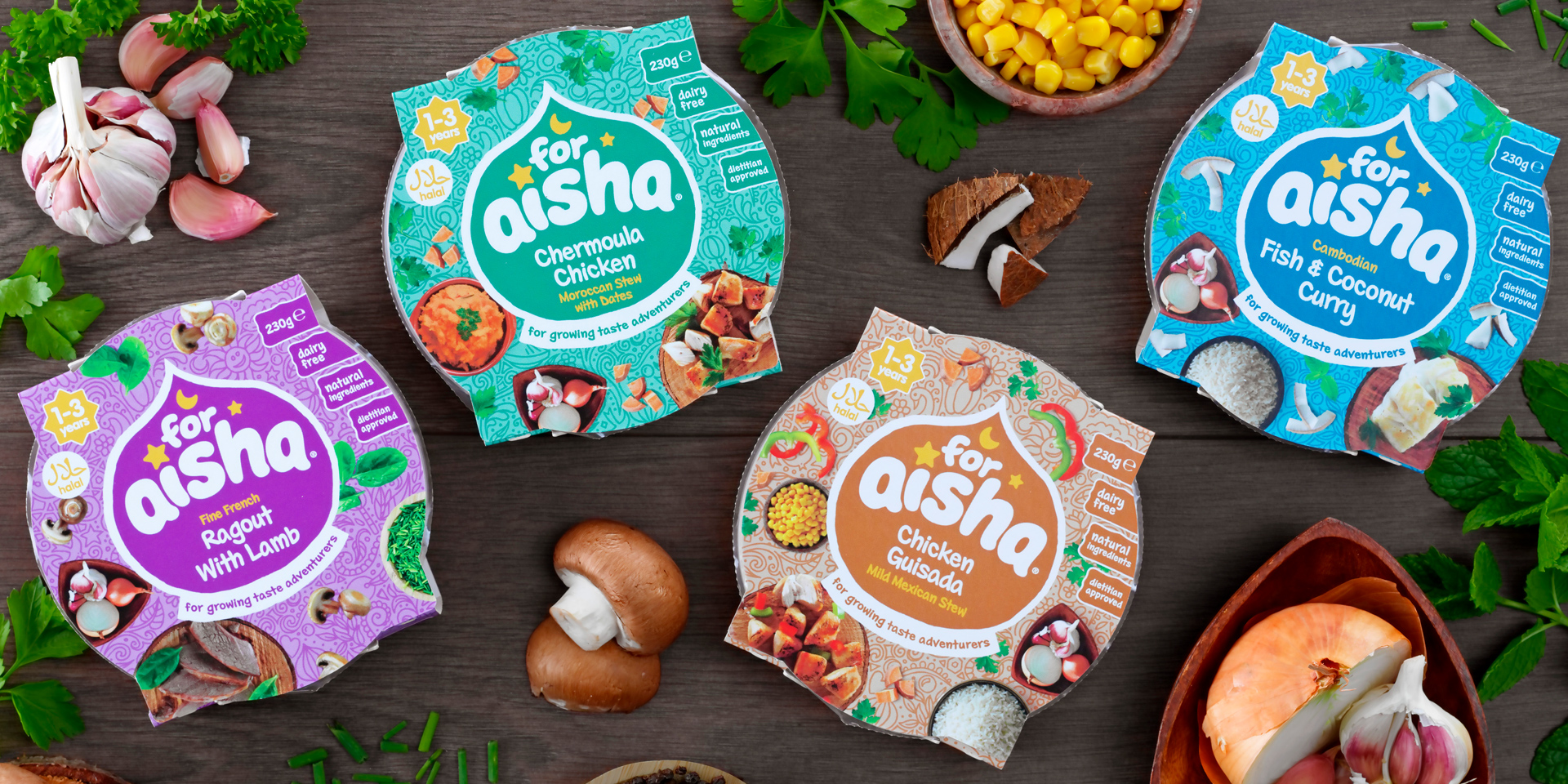 And, of course, it puts For Aisha’s distinctive product packaging front and centre for all to see. Concentrating on shelf standout, we chose to showcase the brand’s promise to use only the very best ingredients. Heritage-inspired colours and dynamic design celebrate the vibrant and exotic flavours of a baby food that promises a taste of something special.